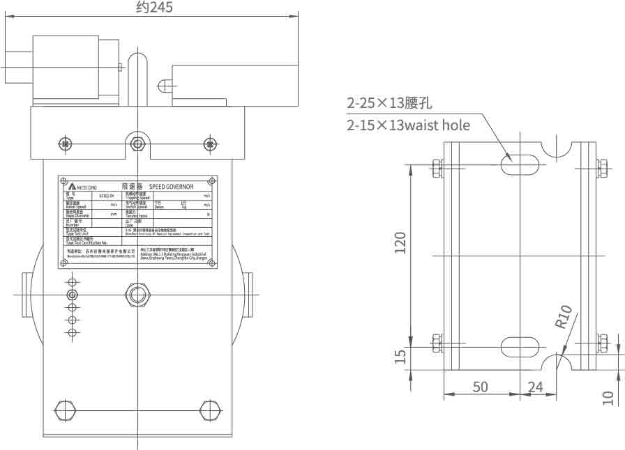 本限速器为无机房双向限速器,开关具有远程电控复位功能,电磁铁能实现远程触发动作。